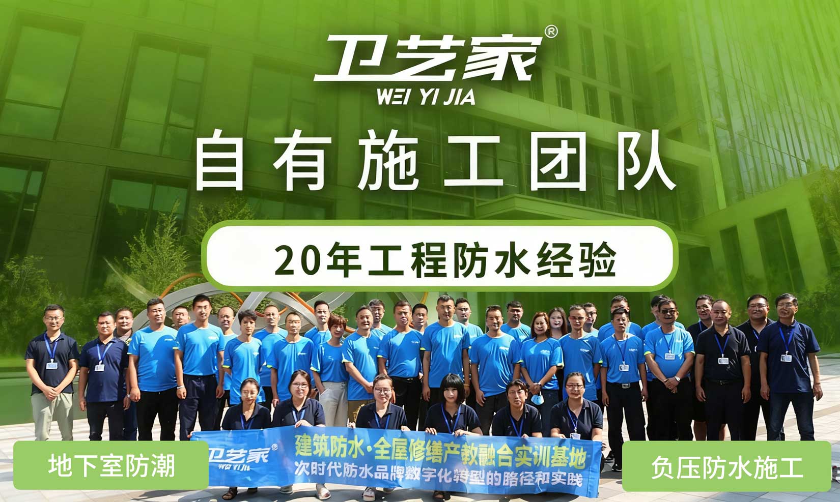 卫艺家防水,创始人专业防水服务20年,提供泸州负压防水施工等专业防水工程施工,自有施工团队,20年工程防水经验。卫艺家防水凭借创始人 20 年的专业积淀和国家高新技术企业的技术实力,以负压防水技术为核心,为各类建筑渗漏难题提供系统性解决方案。作为拥有二级防水施工资质、30 余项国家专利的正规企业,卫艺家已累计完成超 8000 个防水项目,从别墅地下室负压防水工程、大型建筑屋面防水到老旧小区平改坡防水工程,用 "背水面主动防渗" 的技术突破,重新定义了防水工程的标准。